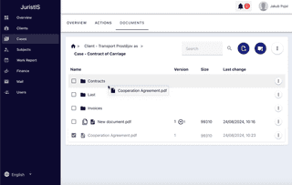Figure 7: Case documents view with folders and documents and drag & drop funcitonality demonstration.